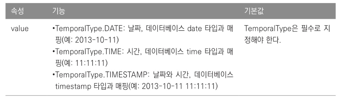 - @Temporal 속성 정리