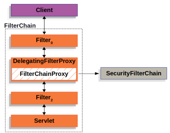 - Filter Chain Proxy: Delegaing Filter Proxy를 통해 받은 요청과 응답을 Security Filter Chain에 전달하고, 작업을 위임하는 역할